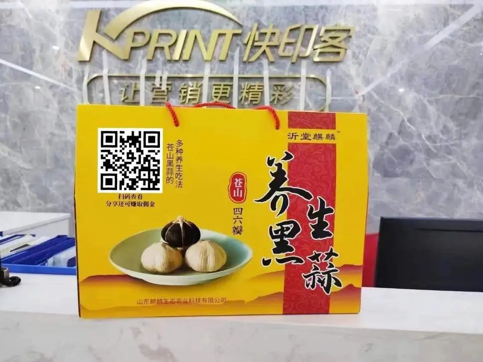 就像这个学生寄给我们的养生黑蒜,这种风格一看就是快印客的学生做的,在中国没有其他别的广告公司或者说设计公司,特别是做硬包的公司,他们是绝对不可能做这种包装的,他们脑子里没有这样的意识。你指望包装厂、印刷厂、传统的广告公司、传统做设计的图文店、软件公司来实现这些功能,不可能,必须是这几个整体融合在一起,对整个中国的移动互联网的生态又非常的熟悉,然后才有机会创造一种依托于农村独有的广告载体,就是商品的包装物这么一种特殊的特色。才能开发出独具特色,真正实现信息共享、打通上下游产业链的一种“数字+”的技术解决方案。所以,我相信快印客以及我们旗下所有的加盟店在2022年一定能发挥巨大的作用。