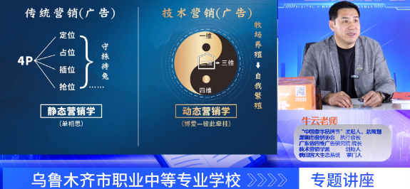 3月17日,深圳市营销协会执行会长牛云老师为乌鲁木齐市职业中等专业学校、贵州航天职业技术学院、贵州工商职业学院、郑州职业技术学院、武昌理工学院、长江职业学院艺术学院以及湖北职业技术学院七所院校的老师们做了一场别开生面的专题讲座。