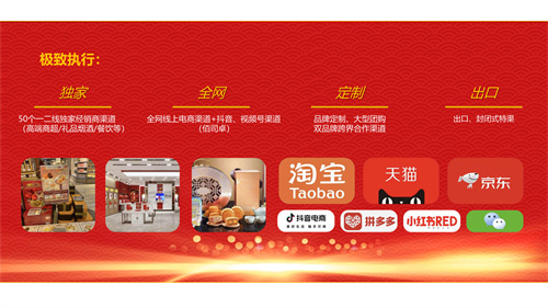 “月圆九州”首年计划在全球50+城市进行销售推广,首期以中国一二线城市为主,全球其它城市为辅,再逐步发展其它城市。通过50个一二线独家经销商渠道,全网线上电商渠道+抖音、视频号渠道,品牌定制、大型团购双品牌跨界合作渠道,以及出口、封闭式特渠等全渠道铺货,利用国内、国际线上媒体、国际线上户外媒体和公关营销形成传播矩阵,将“月圆九州”品牌营销效果最大化。