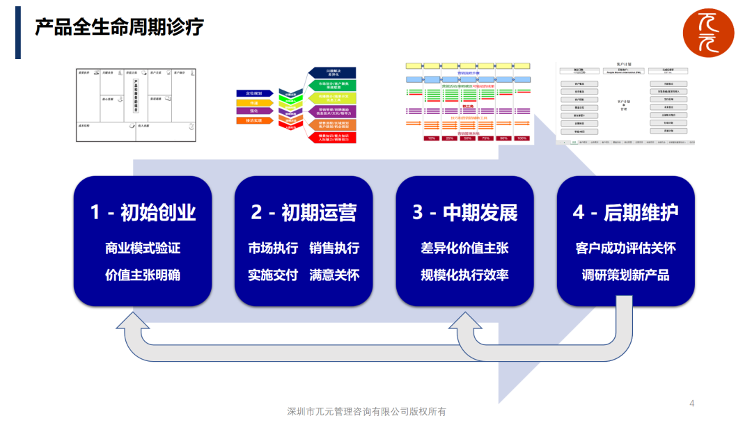 借助兀元咨询提供的认知培训,帮助企业团队尽快统一思想和行动步伐;借助咨询服务,明确目标、策略、路径和方法;借助通过咨询制订的赋能工具和流程方法,对执行人员进行赋能培训和认证;借助辅导落地和项目成功管理,持续扩展赋能,体系不断夯实,流程不断优化,工具不断完善和丰富。