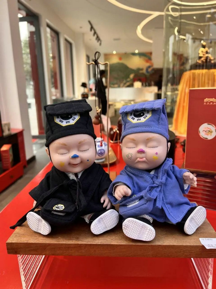 武当山文创官方旗舰店店内面积近200平米,采取传统武当特色和现代元素相融合的装修风格。走进大门,映入眼帘的是“一柱十二梁”、红墙翠瓦及太极图形设计,店中央的橱窗里放置着一尊真武大帝,充分展现出武当文化的独特魅力。