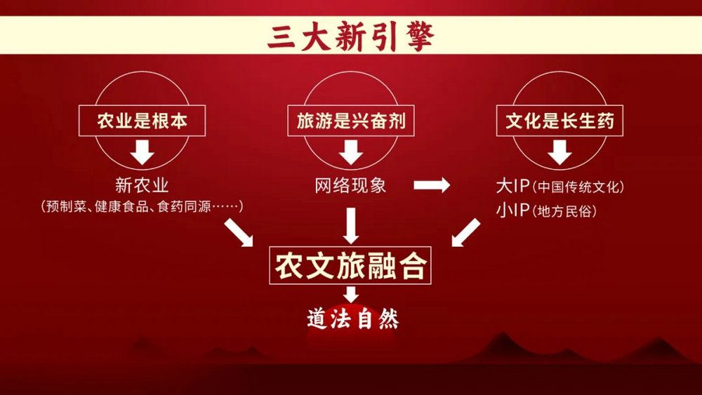 农文旅融合的三大新引擎主要是:农业、旅游与文化。