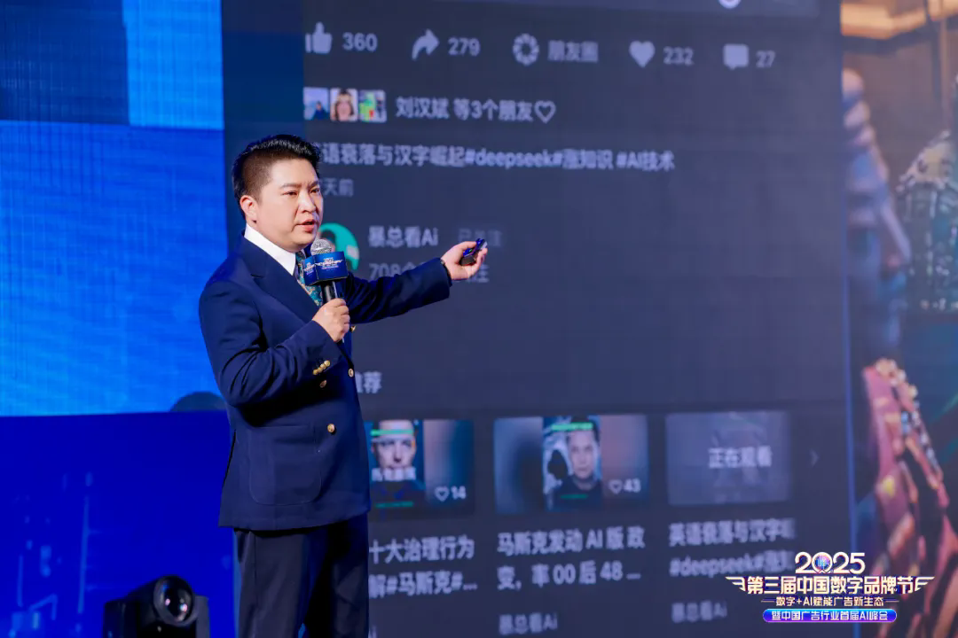 在2025第三届中国数字品牌节上,腾讯云生态架构师、DeepSeek狂热使用者张斌,用一场《超脑经济·王炸出击 DeepSeek营销操盘揭秘》为主题的演讲,为现场嘉宾揭开AI超脑的神秘面纱,一同开启充满期待的AI时代!