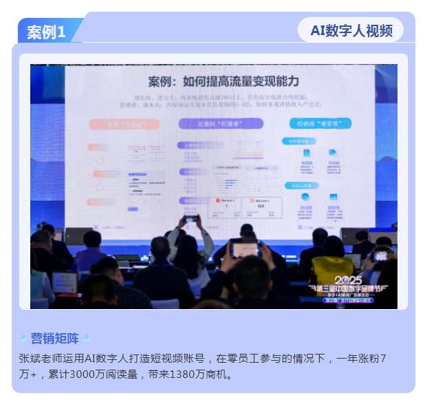 例如,AI数字人代替真人出镜,不仅降低成本,还能24小时不间断工作,极大提升营销效果。
