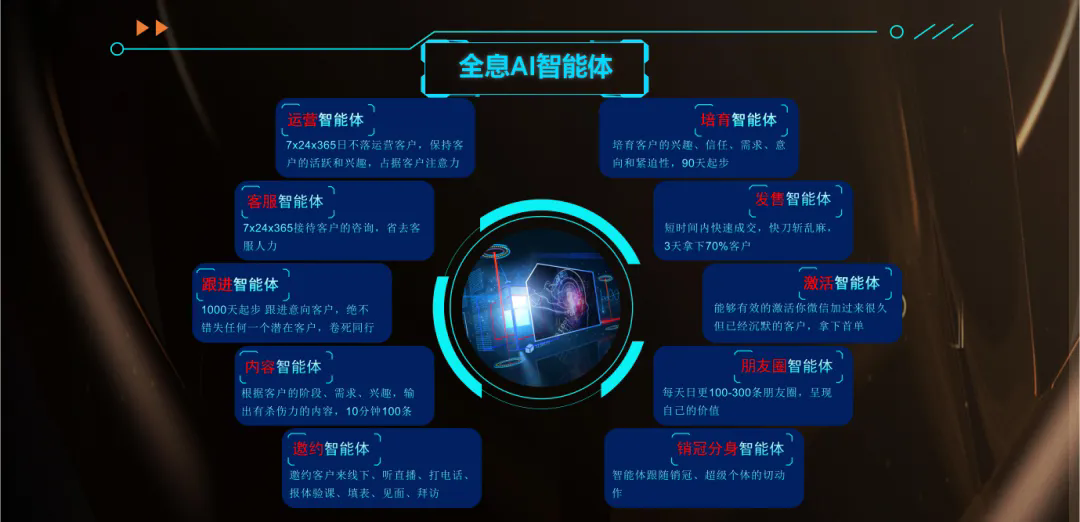 通过AI技术,企业可以大幅提升流量获取效率,优化转化率,并通过招商吸引更多合伙人和裂变实现客户规模的指数级增长。例如,利用AI数字人工具+营销矩阵的搭建,企业可以快速生成吸引人的内容,精准触达目标客户,并通过私域运营实现高效转化和裂变。